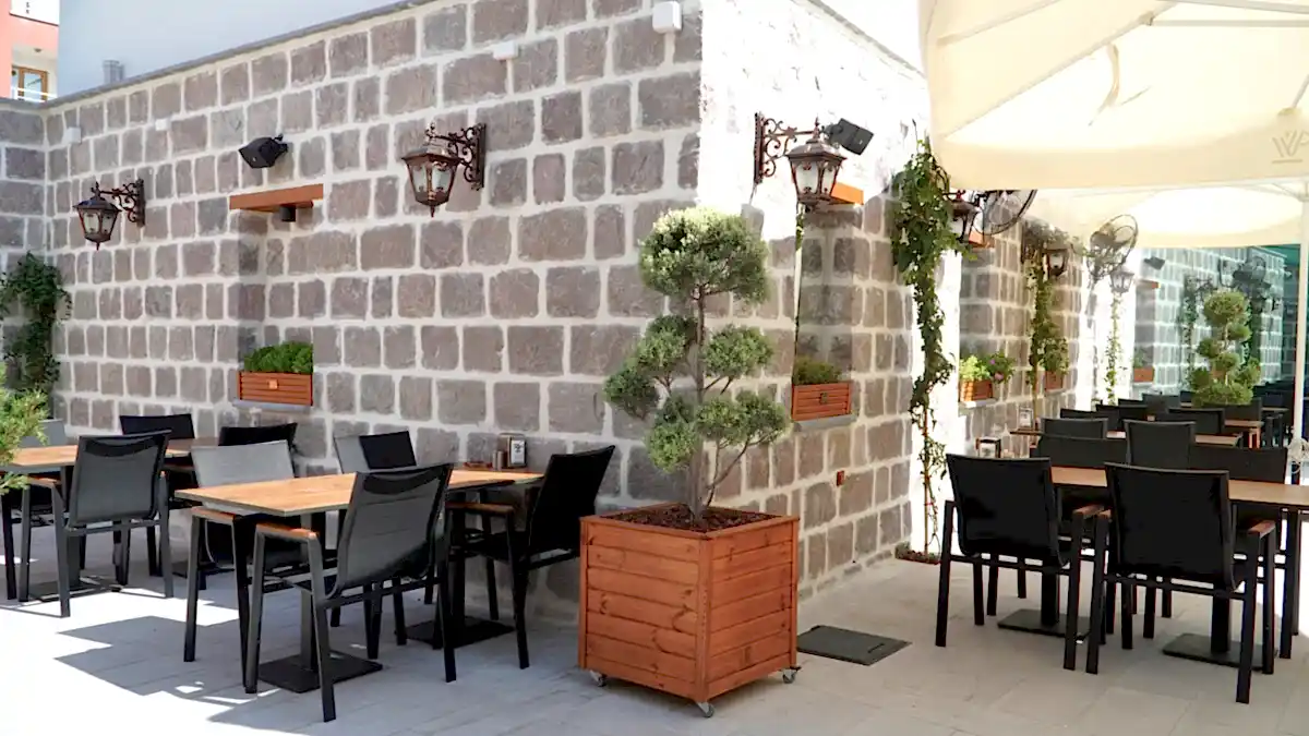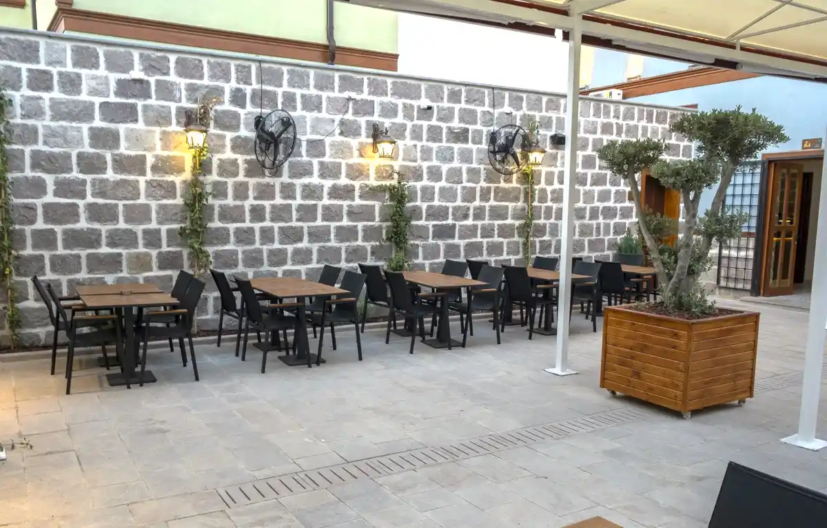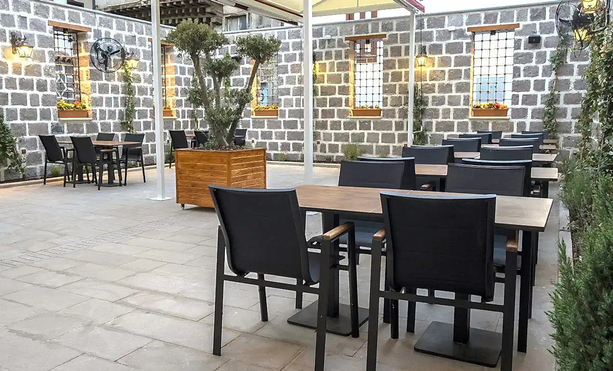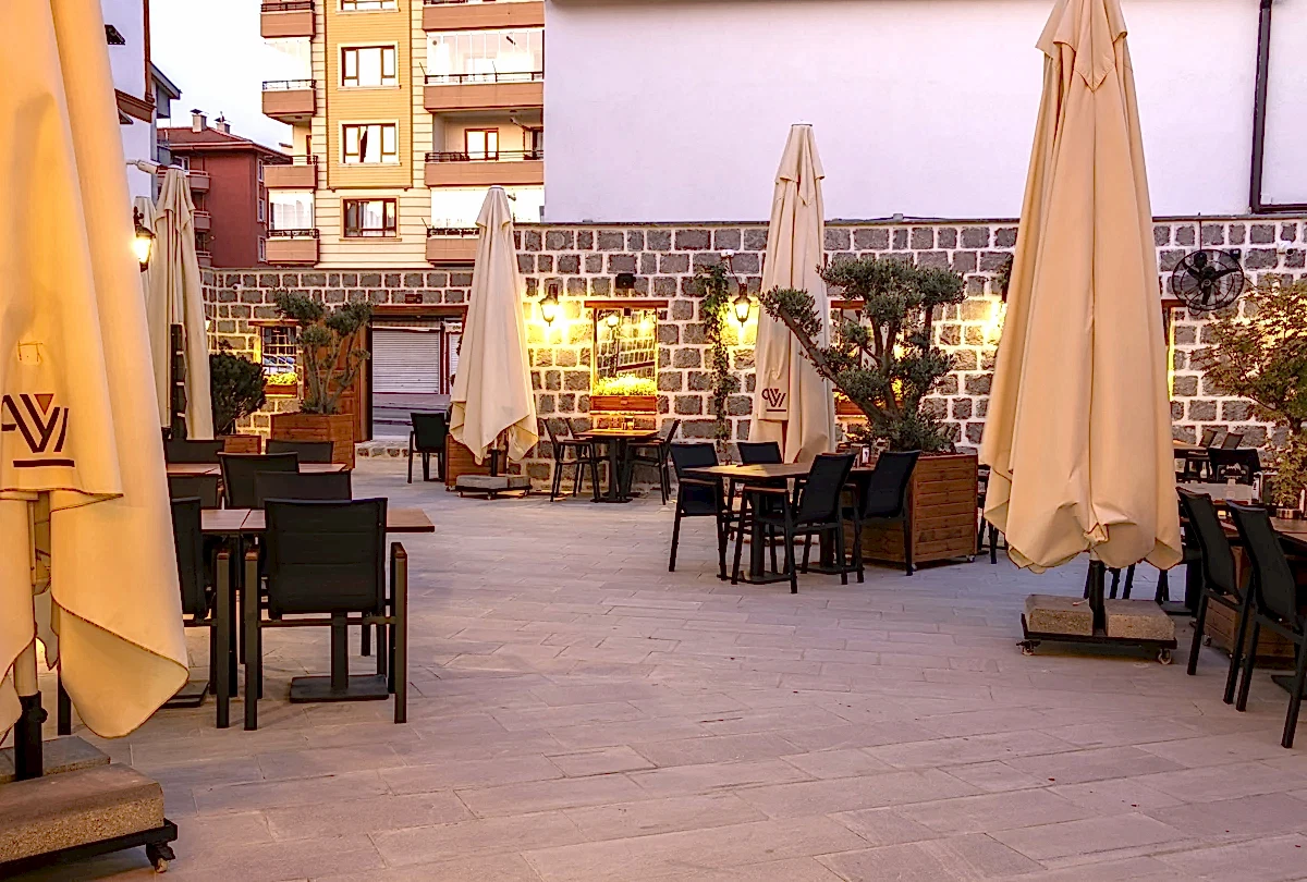 Vitalen Cafe'nin kahve ve tatlı alanı, zarif peyzaj çalışmalarıyla çevrili, ferah ve samimi bir mekân. Şık ve konforlu oturma alanlarıyla, kahvenizi ve tatlılarınızı keyifle tüketebileceğiniz rahat bir ortam sunuyor. Bahçesinin özenli detayları, burada geçirilen zamanı özel ve huzurlu kılıyor.